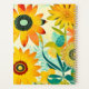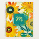 Yellow and turquoise whimsical folk art flowers notebook. Add initials in the personalised area.