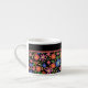 Pretty Folk Art Style Floral on Black Espresso Mug