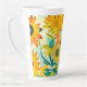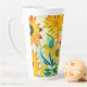 Yellow and turquoise whimsical folk art flowers coffee cup.