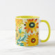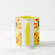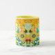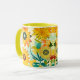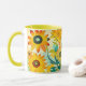 Yellow and turquoise whimsical folk art flowers coffee cup.