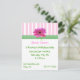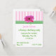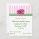 Pretty girl's party invitation done with pink and white stripes at the top bordered with a green and white gingham ribbon and a pink Gerber daisy. Customise all the text fields to your needs, with text style, colour, and size.