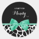 Pretty Giraffe Print Mint Green Bow With Name Classic Round Sticker
