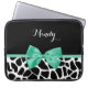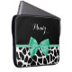 Pretty Giraffe Print Mint Green Bow With Name Laptop Sleeve