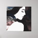 A pretty girl with flowing hair. Has a brown hues watercolour background. She also adorns a beautiful scarf!
