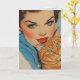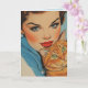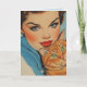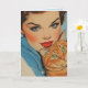 PRETTY GIRL WITH CAT BIRTHDAY RETRO GREETING CARD
