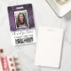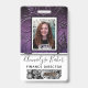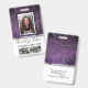 Faux violet purple and black glitter sparkles delightfully behind a photo template with black and white frame. Easily update the name and professional job title for each custom employee badge. There is also space for a company logo—delete to leave blank. Backside features more faux glitter and an image template perfect for employee bar codes. Available in many other styles and colours.
