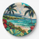 Comic book style pop art Hawaiian Island. Vacation or travelling themed paper plates. Pretty for a Tropical themed Birthday party.