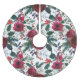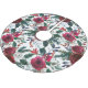 This elegant red floral Christmas tree skirt is perfect for putting around your Christmas tree this holiday season. This pretty Christmas tree skirt features a white background with beautiful grenadine red and white roses. Pretty botanical green branches of pine and paired with sweet mistletoe and red berries.