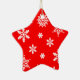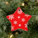 Pretty holiday snowflakes on red background ceramic tree decoration