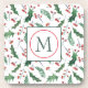 Pretty Holly Pattern Monogram Christmas Coaster