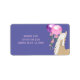 This horse address label design features a Pretty Palomino Pony with pink and purple balloons on a periwinkle background. -