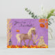 ~ This birthday party invitation features a pretty horse trotting through autumn leaves on a beautiful purple background. Some graphics by artwork©delightful-doodles.com