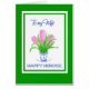 A pretty Persian New Year Greeting Card for a Wife, with a blue and white pot of pink hyacinths in a green border and Happy Norooz in blue, from a watercolour painting by Judy Adamson. A custom front version of this design is also available and you can personalise the inside message of this card if you wish.