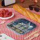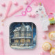 Pretty Victorian Christmas house with pretty snow in the background. Christmas party supplies.