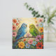 A pretty blank notecard for a friend or family member who loves parakeets! On the front is an impasto painting style blue and green parakeets and flowers.