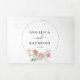 Display all the details of your wedding with this elegant tri-fold 3 in 1 wedding invitation featuring a classic white background, black calligraphy and cursive font and watercolor botanical greenery with succulent eucalyptus, pretty pink, peach and white florals, and faux gold foil accents. It includes a photo of the happy couple, and wedding invitation. Guests can easily cut away the RSVP postcard and pop it in the mail! Easily edit all of the information with your wedding details using the template provided. Affordable all-in-one wedding invitations that will wow your guests.