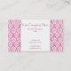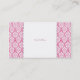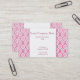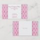 This great business card for any business or use. It features a pink damask pattern on both sides. Graphics of ribbons run up both sides. The text is a matching mauve colour.