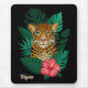 Pretty Jungle Leopard Floral Art | Black | Name Mouse Mat