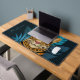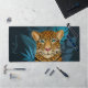 Pretty Jungle Leopard Floral Art | Blue | Name Desk Mat
