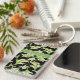 A pretty rectangular Keychain to personalise, with an Art Nouveau style pattern of Lilies-of-the Valley on a Black background; from the Posh & Painterly 'For the Love of Lilies' collection.