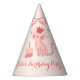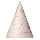 Complete your party with this cute pink party hat! Adorned with the cutest birthday princess, stars and bows, and personalised with your own message this hat will help your day feel special! Easily personalise this design with your party details! Check out our matching collection for coordinating items.