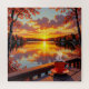 Puzzle with a pretty illustration of a sunrise in the morning overlooking a lake view at a lake houses with a cup of warm coffee sitting on the ledge.