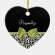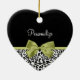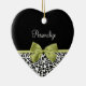Personalise by adding the name of any girly girl to this pretty black and white leopard print heart-shaped ornament with a cute spring green ribbon tied into an elegant bow. This chic and stylish animal print design is a flat printed image, and does not contain actual ribbon.