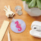 Pretty little pink seahorse on an abstract purple background.