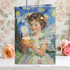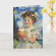 A sweet birthday card for a little girl. The front has an illustration of a pretty girl holding a cupcake with flowers in her hair, white wings and a vintage dress done in an impasto vintage style. The inside has a pretty poem for her.