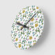 Enhance your wall space with this charming Pretty Little Wildflower Meadow Floral clock, featuring a delightful blend of blue, yellow, and pink hues set strikingly against a crisp white background.