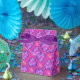A pretty and romantic Tent Favour Box, with a pattern of hearts and flowers on a magenta background. From a hand-painted paper collage by Judy Adamson, this pattern can be adjusted to fit any Favour Box.