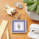 A very pretty Square Keychain, with a Violet motif in Pale Mauve and Green, surrounded by a Border of Mauve Polka Dots on White and a further border of a Floral Violets pattern. Part of the Posh and Painterly "Sweet Violets" collection, from an original watercolour painting by Judy Adamson, this design can be adjusted to fit any square keychain.