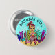 A turquose brown haired mermaid with sea friends "Birthday Girl" button. This little mermaid can be representative of African-American or Hispanic girls.