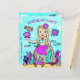 A cute affordable way to invite friends to a little girl's birthday party. A hand drawn folk art style whimsical Caucasian blonde mermaid and her under the sea friends brightly coloured girl's birthday invite.