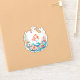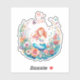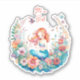 A pretty little mermaid in a bed of flowers watercolor illustration girl's baby shower stickers. Colours used are pink, coral, orange, yellow and blue.
