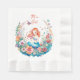 A pretty little mermaid in a bed of flowers watercolor illustration girl's baby shower paper napkins. Colours used are pink, coral, orange, yellow and blue.