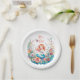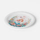 A pretty little mermaid in a bed of flowers watercolor illustration girl's baby shower paper plates. Colours used are pink, coral, orange, yellow and blue.