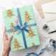 Pretty Mint Green Gold Christmas Tree Wrapping Paper
