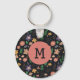 Pretty Modern Dark Floral Pattern Monogram Key Ring