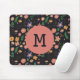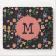 Pretty Modern Dark Floral Pattern Monogram Mouse Mat