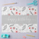 Pretty and modern flowers pattern in red and grey on white background. Centre grey text band can be customised or left as-is with "happy birthday" sentiment