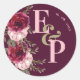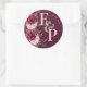 Pretty Monogram Burgundy Blush Pink Floral Wedding Classic Round Sticker