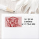 Simple and elegant nativity scene Christmas ornament, featuring a pale red speckled background with a rich dark red stamp of Mary, Joseph and baby Jesus inside a small manger with the bright star above them.