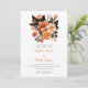 The invitation itself is classic white with a simple black font, except for the couple's names, which are in a modern orange script font to complement the floral arrangement. This creates a harmonious and cohesive look that will surely impress your guests.