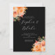 Pretty Orange Floral Elegant Black Wedding Invitation