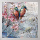 Pretty Painted Blue Birds and Flowers Faux Poster