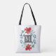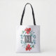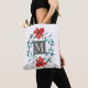 pretty painted red flower design with monogram tote bag