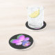 This pretty sandstone coaster features a photograph of a wild Pansy flower. The photo has been artificially coloured resulting in a pansy with glowing pinkish purple petals with green tips petals and a deep blue centre. The background is black to make the flower stand out.