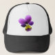 This design features a highly detailed photograph of a wild pansy flower, taken using macro photography. You can also have this design on several different coloured hats.
