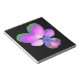 This awesome notepad features a photograph of a wild Pansy flower. The photo has been artificially coloured resulting in a pansy with glowing pinkish purple petals with green tips petals and a deep blue centre. The background is black to make the flower stand out.